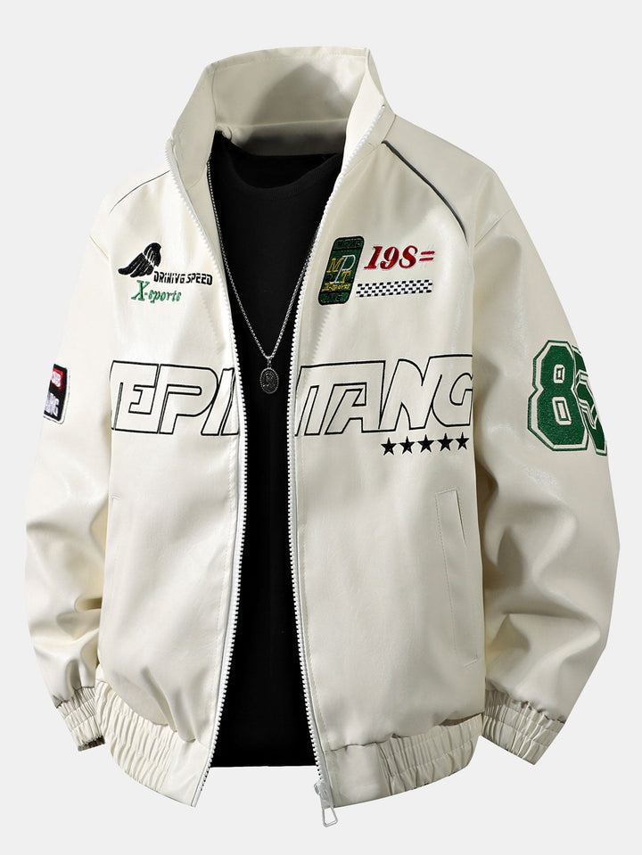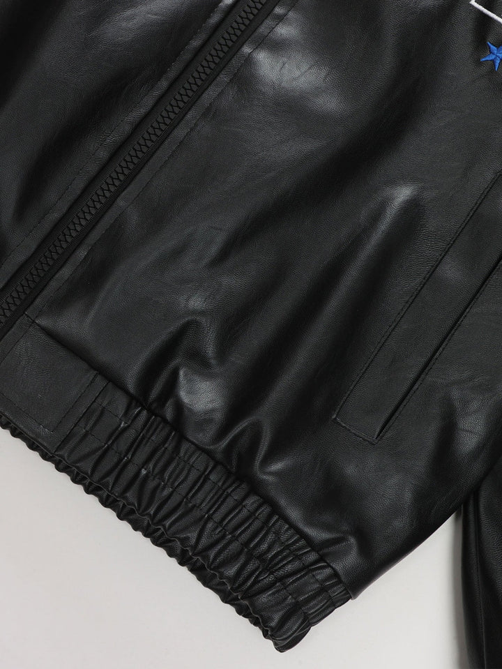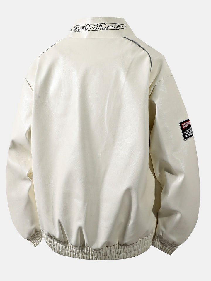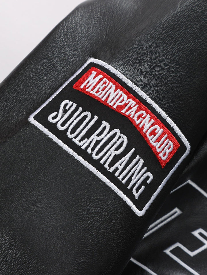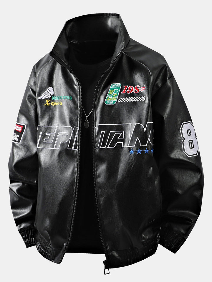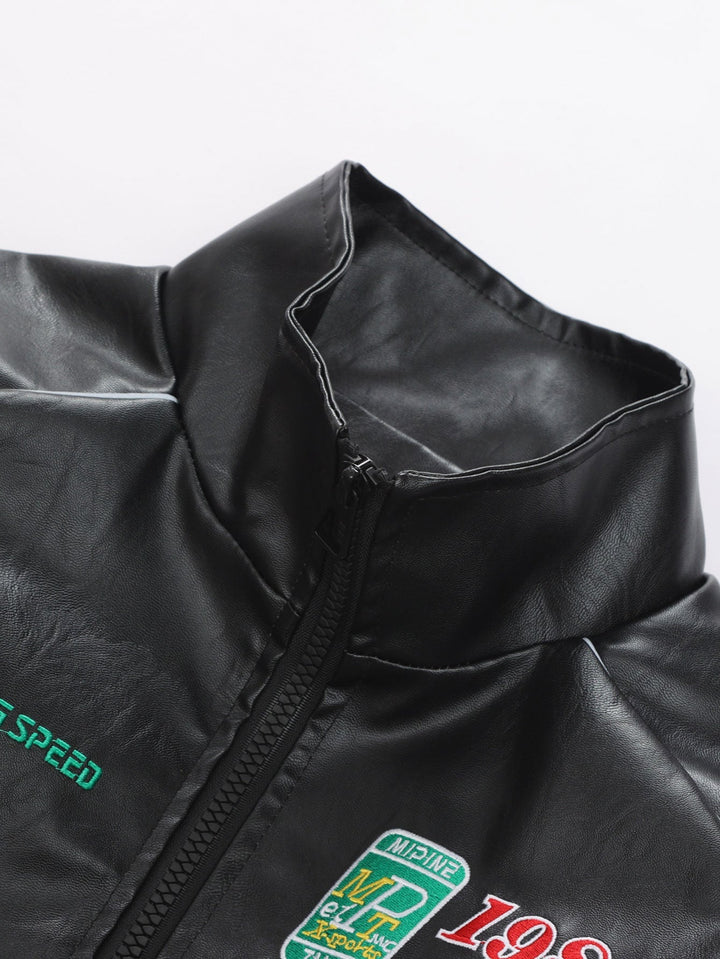 Veste de Course en Cuir avec Broderie et Doublure en Fleece