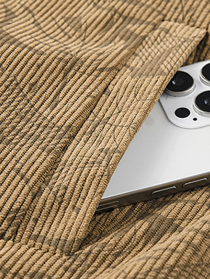 Ajoutez une touche de style à votre garde-robe avec cette veste en velours côtelé, ornée de graphismes floraux délicats. Son design vintage se marie parfaitement à une esthétique moderne de streetwear.
