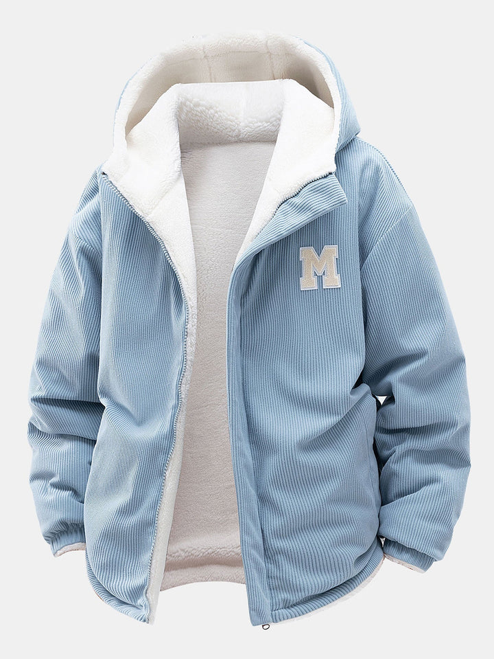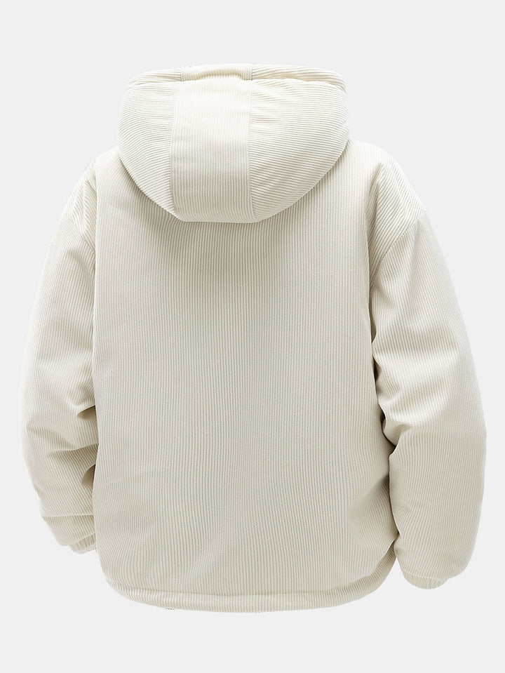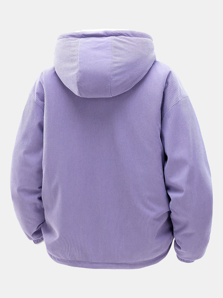 Veste Réversible en Velours Côtelé avec Capuche Teddy